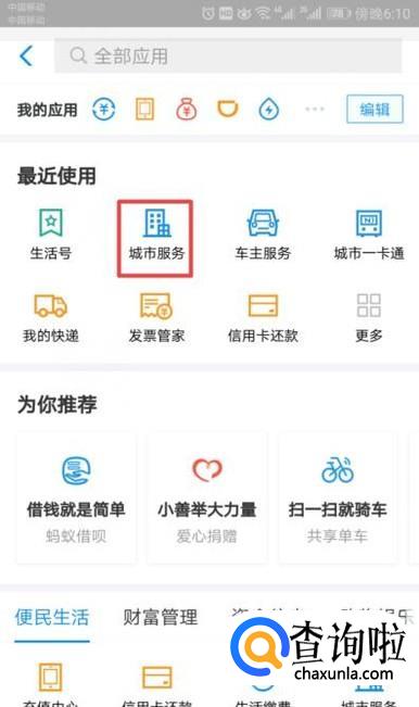 弹出的界面,我们点击城市服务;