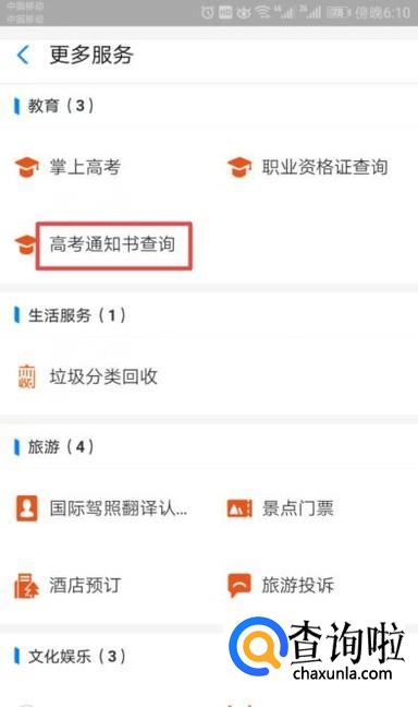 弹出的界面,我们点击高考通知书查询;