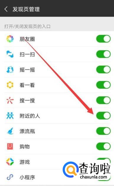 进入之后,将“附近的人”功能关闭即可,如图所示。