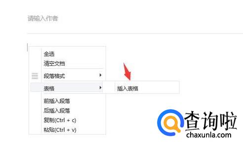 点击右键,选择表格。接着直接点击鼠标右键,然后可以看到有一个表格,这时候直接点击表格,将其插入到文章中即可。