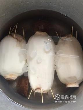 把切下来的藕节盖回莲藕的两头并用牙签固定住