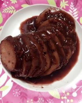 炖至汤汁粘稠莲藕变深色,用筷子可以很轻易的戳动就关火,放凉后切片享用