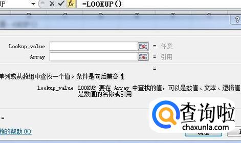 弹出插入函数对话框,接下来选择类别为全部,在下方的列表框中找到Lookup函数,点击确定。