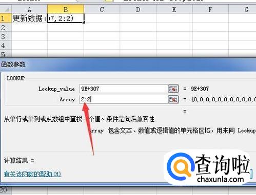 在第二个参数框中输入要检测的数据区域,比如第2行中的所有单元格,则输入2:2,确定。