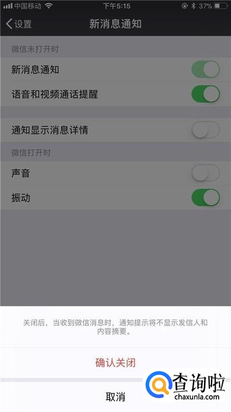 这样设置完成我们就成功关闭了微信通知栏显示消息内容。