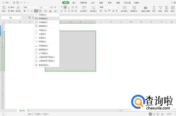 然后我们选择上方的“所有框线”,这个时候我们选择的表格可以更加明显的展示出来,这下就不用再受那么多的单元格困扰,可以做自己想要的表格形式,最后不要忘记保存了哦~