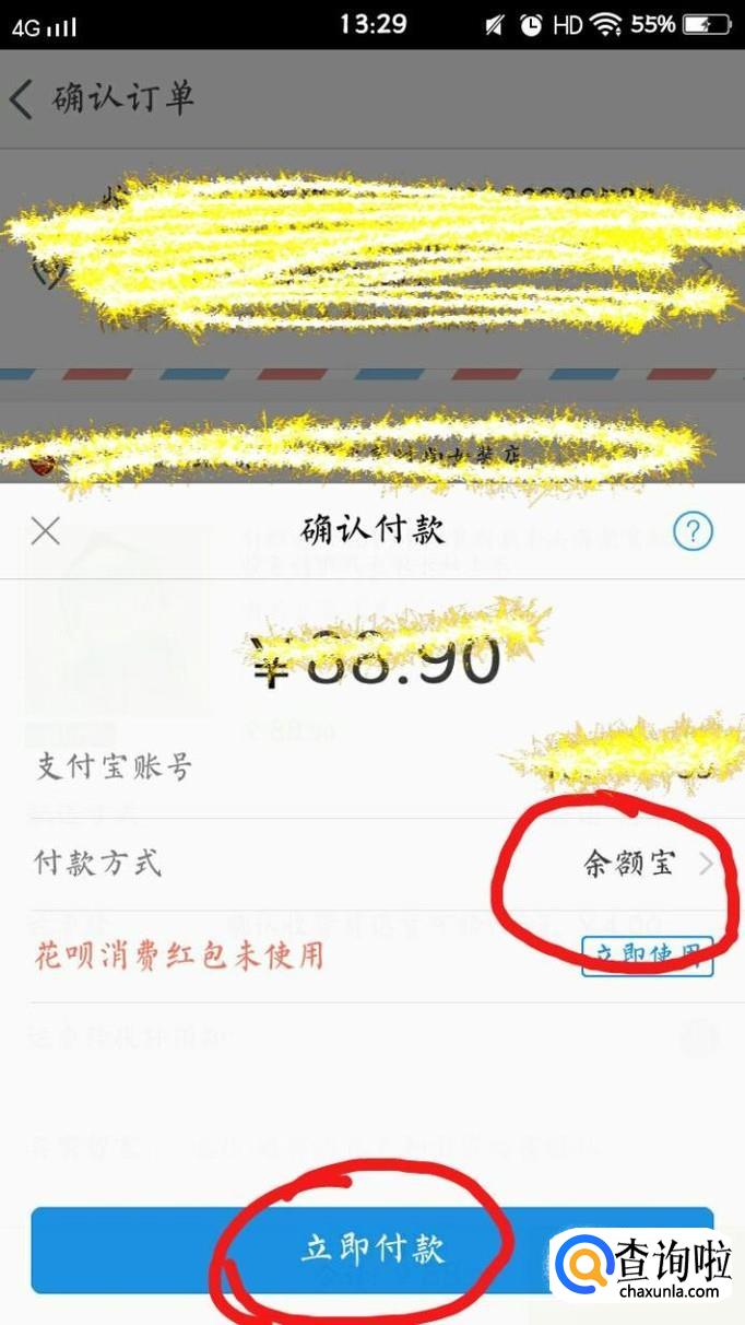 最后在确认付款界面,付款方式被选为余额宝,点击最下方立即付款就OK啦!
