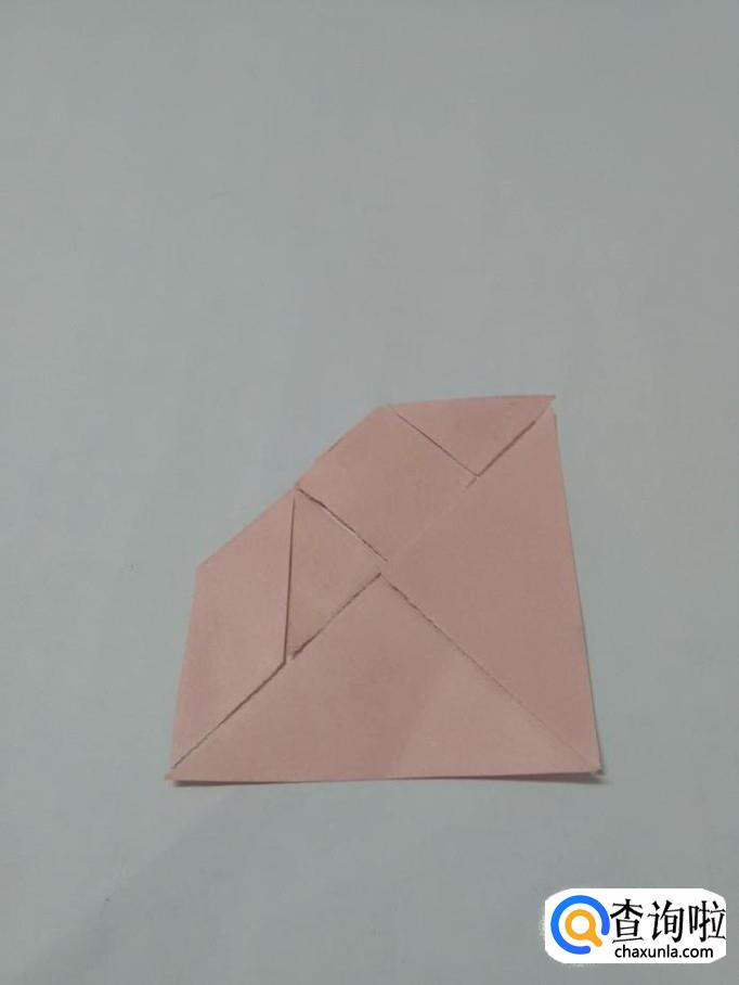 将第二个大号三角形放在第一个大号三角形的右上方,这是正方形的第二条边。