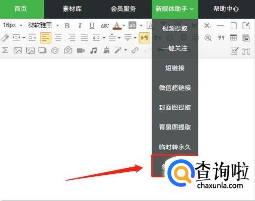点击顶部导航栏的“新媒体助手”——“微信热文”。