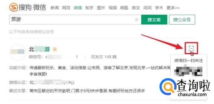 点击公众号名称可查看该公众号最近发布的10条文章,点击右侧的二维码图标,可查看该公众号的二维码。