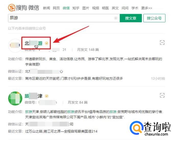 在搜索框中输入关键词,点击“搜公众号”,可查询到与关键词相关的公众号。