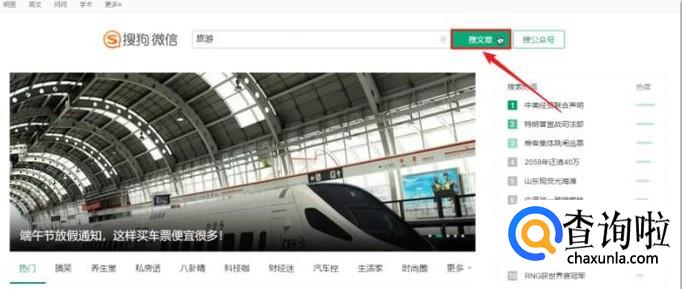 在搜索框中输入关键词,点击“搜文章”,进行搜索。