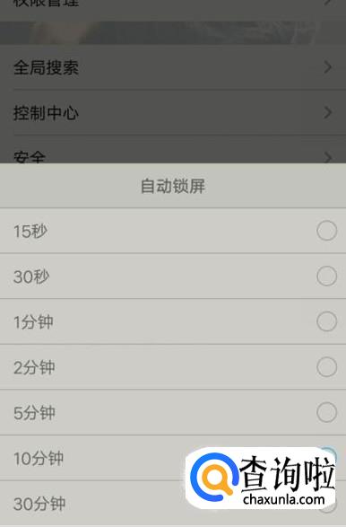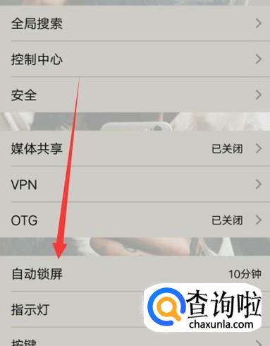 进入之后,向下滑动找到“自动锁屏”,进入下一页面,如图所示。