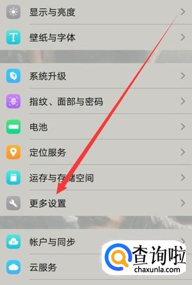 进入之后,找到“更多设置”,点击并进入,如图所示。