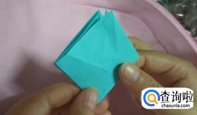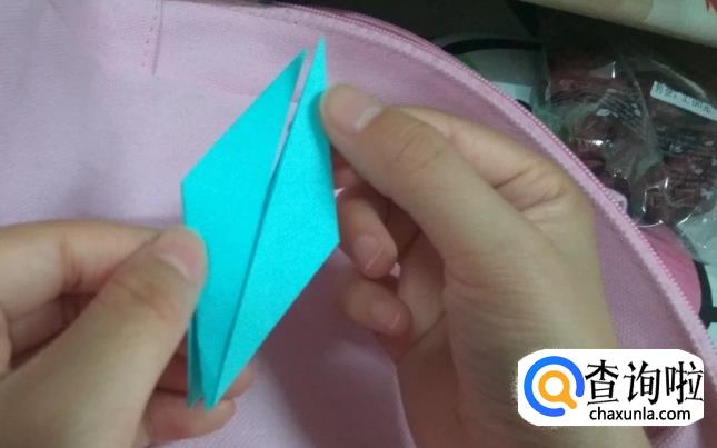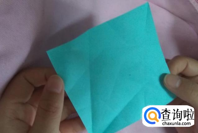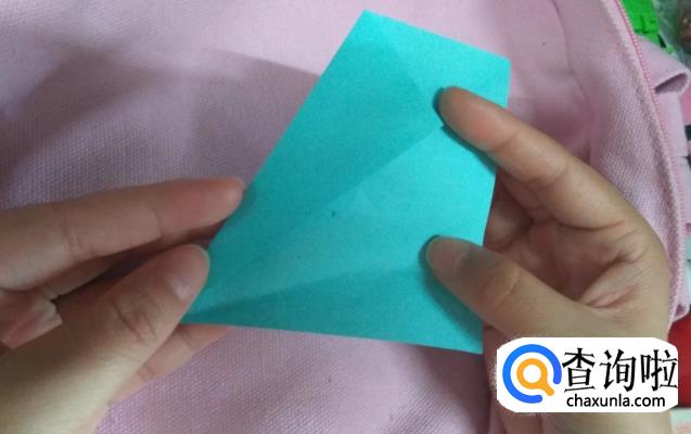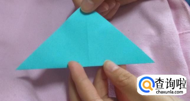 把下面的三角形向上对折。折好后,从中间分开换到另一个方向。