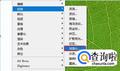 选中新图层,然后在工具栏点击"滤镜"-"扭曲",在扭曲对应的右侧选框里点击"球面化",如图所示