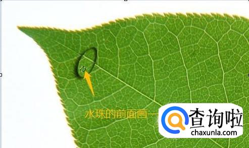 这些全部设置完成以后,叶子上的水珠就基本成型了,如图一所示;不过还不算完美,因为有阴影自然水珠上面要有高光部分,接着我们使用刚才的椭圆工具在水珠的前面画一个小的椭圆出来