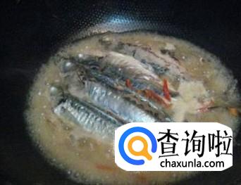 锅中加油,8分热时加鲅鱼煎炒,待鲅鱼皮部变色时加水适量。