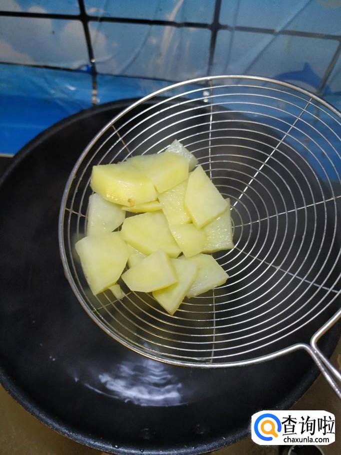 锅中烧开水,水开后,将土豆放入锅中焯水,焯至八成熟,就可以捞出备用。