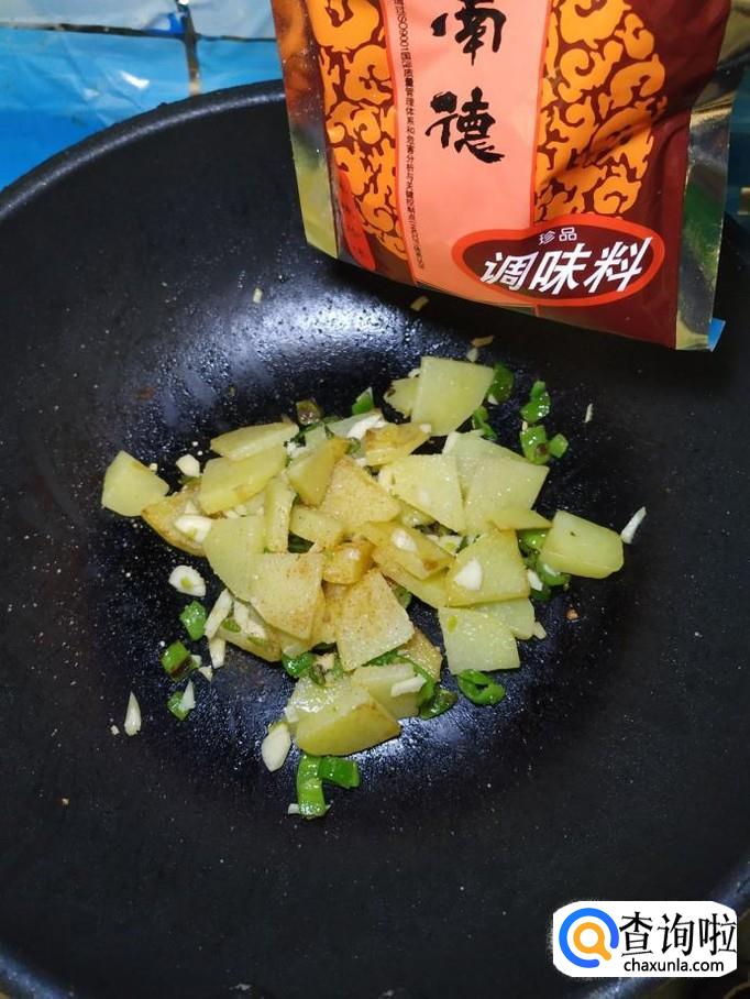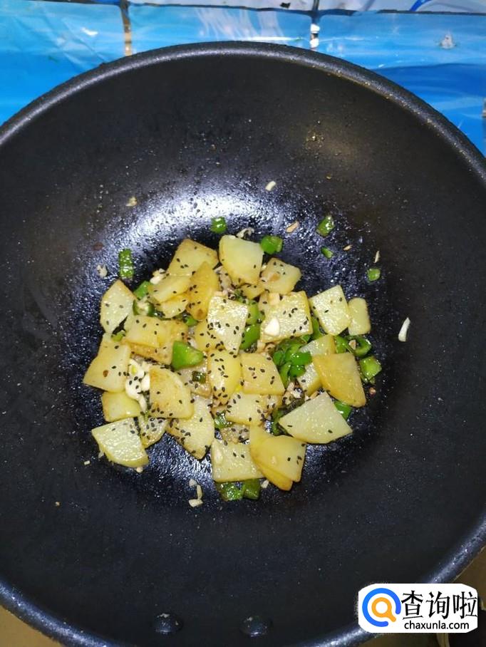 土豆适量,青椒适量,黑芝麻适量,大蒜适量,盐适量,鸡精适量,五香粉适量,生抽适量。