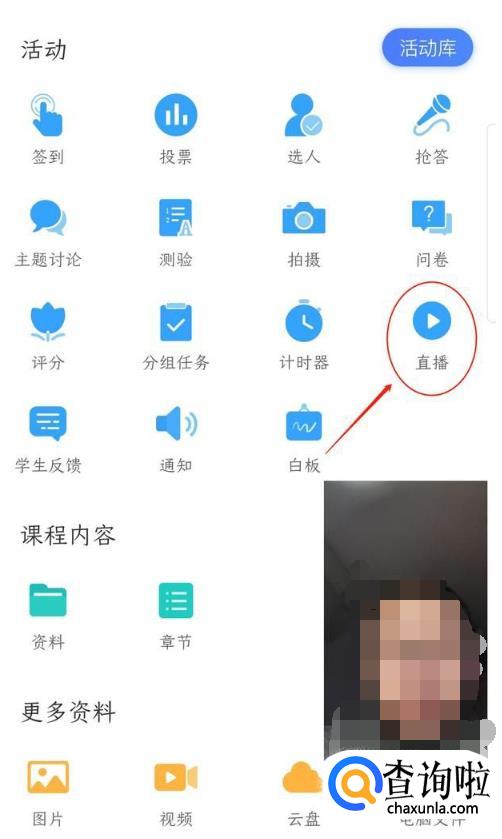 超星学习通提供了两种课程直播,一种是类似抖音、快手这样的真人直播,另一种是选择云盘课件进行直播。