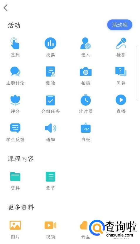 进入上课界面,选择“+”号,还可以进入互动界面。