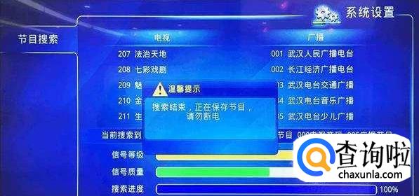 然后机顶盒会自动搜索频道,等到搜索完成了就会展示所有搜到的频道了,然后按退出键就完成搜索,选择频道就可以看电视了。