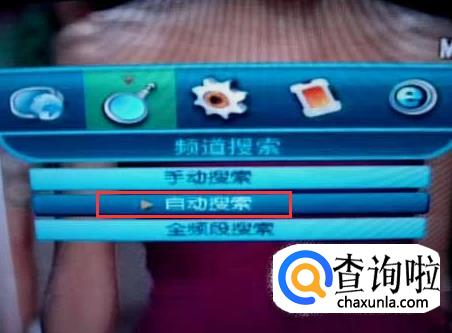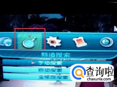通过遥控器上的方向键控制,选择频道搜索的图标,图标下方也会有文字说明。