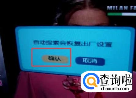 提示自动搜索会恢复出厂设置,点击确定继续。
