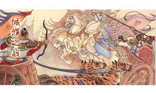 过了两年,又有宋襄公的儿子宋成公来讨救兵,说楚国派大将成得臣率领楚、陈、蔡、郑、许五国兵马攻打宋国。大臣们都说:“楚国老是欺负中原诸侯,主公要扶助有困难的国家,建立霸业,这可是时候啦。”晋文公早就看出,要当上中原霸主,就得打败楚国。他就扩充队伍,建立了三个军,浩浩荡荡去救宋国。公元前632年,晋军打下了归附楚国的两个小国——曹国和卫国,把两国国君都俘虏了。楚成王本来并不想同晋文公交战,听到晋国出兵,立刻派人下命令叫成得臣退兵。可是成得臣以为宋国迟早可以拿下来,不肯半途而废。他派部将去对楚成王说:“我虽然不敢说一定打胜仗,也要拼一个死活。”楚成王很不痛快,只派了少量兵力归成得臣指挥。成得臣先派人通知晋军,要他们释放卫、曹两国国君。晋文公却暗地通知这两国国君,答应恢复他们的君位,但是要他们先跟楚国断交。曹、卫两国真的按晋文公的意思办了。成得臣本想救这两个国家,不料他们倒先来跟楚国绝交。这一来,真气得他双脚直跳。他嚷着说:“这分明是重耳这个老贼逼他们做的。”他立即下令,催动全军赶到晋军驻扎的地方去。