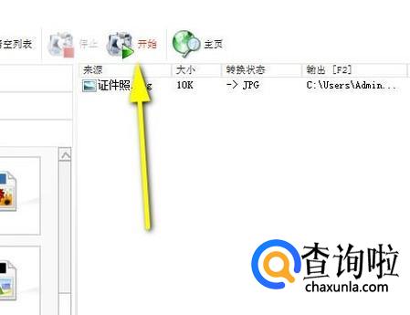 点确定后,面板自动关闭,返回到操作界面中,再在菜单栏这里点:开始。那么,软件就执行缩小证件照的操作。