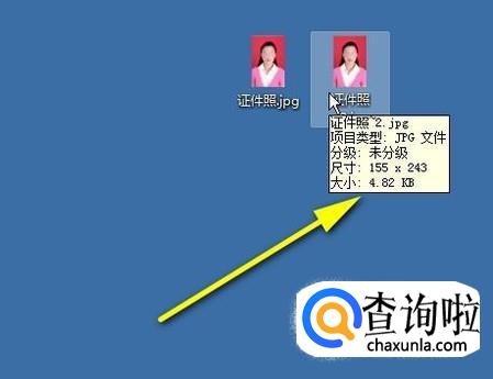点击“开始”后,很快,就显示缩小证件照操作完成。我们再返回到电脑桌面这里,鼠标放在已缩小的证件照上,大小显示为4.82K