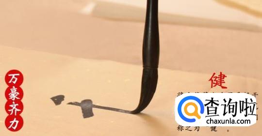 健——即笔腰弹力。将笔毫重压后提起,随即恢复原状。这样写出的字才有力道。