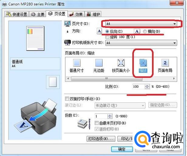在该页面中,把页尺寸由A3改为A4,然后选择页面布局为“缩放”,调整比例(可以通过打印预览,调整到合适大小),设置完成之后,点击确定,打印出来即可。