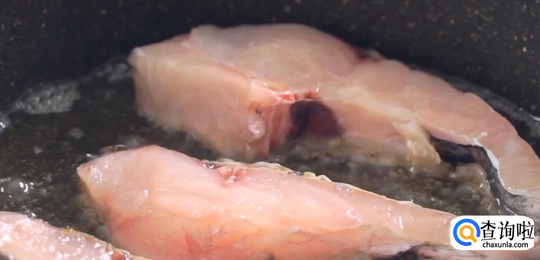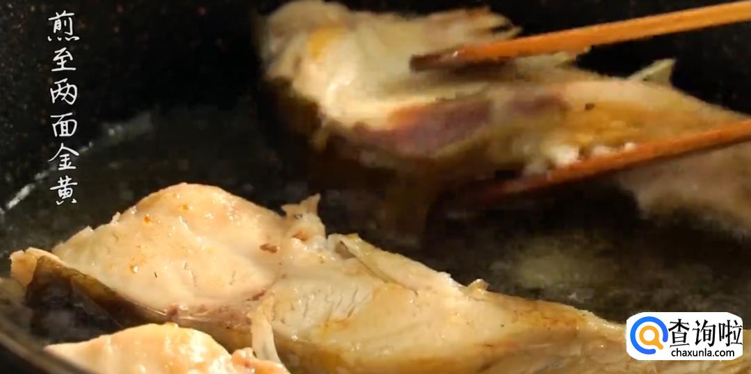 热锅起油,将鱼肉下油锅煎炸至两面金黄后夹出放置。