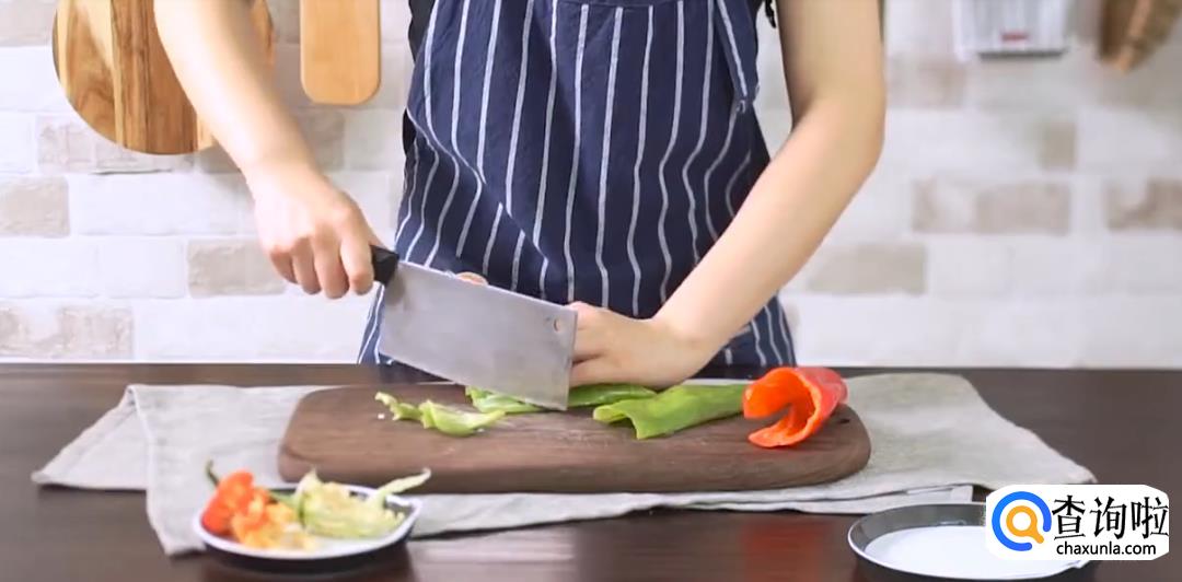 大葱切片,番茄切块,青红椒切块,将蒜剥开拍扁。