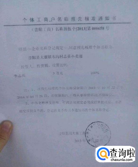 核准登记的当场给予核发《个体工商户名称预先核准通知书》,此通知书留待申请营业执照使用。核准的个体工商户名可以保留6个月,如果6个月内未申请登记营业执照的话就会自动失效,如果你忙的话也可以在期满的前一个月去工商所申请延期。