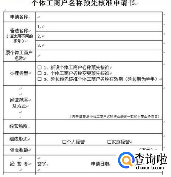 申请个体工商营业执照前,先申请个体工商户名称登记,先给你的店铺起个名字,而这个名字要先进行登记核准后才能进行申请营业执照。店名可以先在草稿纸中写多点,然后再到工商局(市场监督管理所)申请。申请个体工商营业执照,申请时需要准备以下材料:个体工商户名称预先核准申请书。
