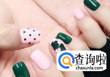 通过将粉色与墨绿色结合,并且配上独特的图案不仅可以使手部看起来极具个人特色,还能够帮助增添几分时尚气息,特别适合二十岁左右的女生。