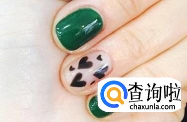 将前几个手指涂抹成墨绿色,剩下的手指则以白色为打底,用黑色在上面绘制爱心图案,不仅可以使整体画面看起来十分的独特,还能够让人有一种眼前一亮的感觉。 - 04