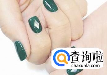 秋天墨绿色美甲图片