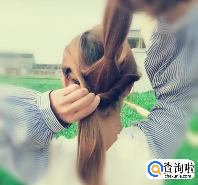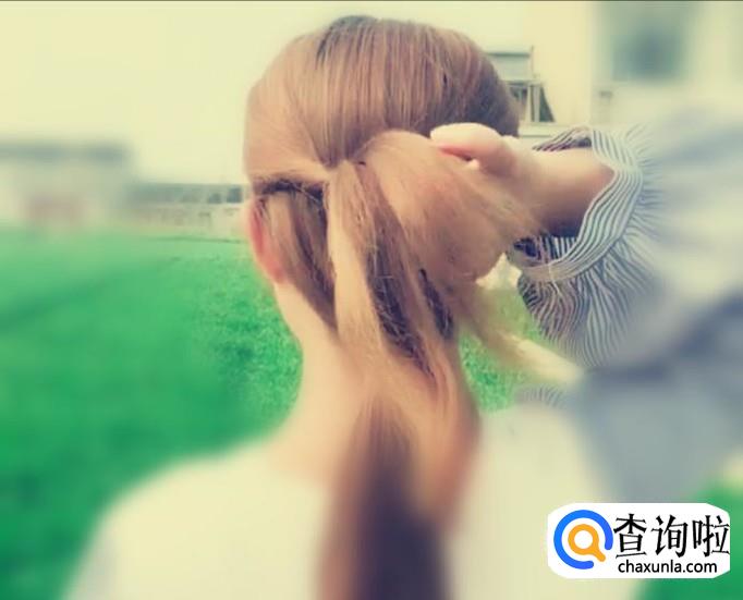 将绑了的头发,由下至上拉一圈,并将余下的头发都绑在一起