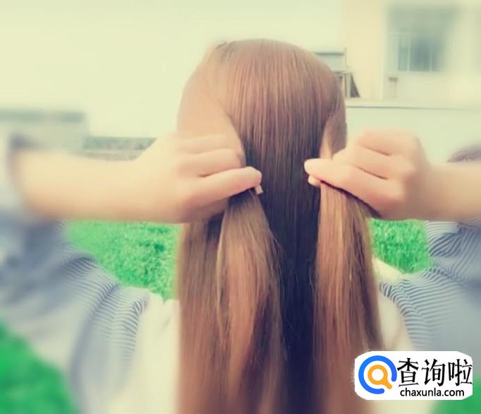 解开上面那一掇头发,散下理直,漂亮的披肩发就完成了