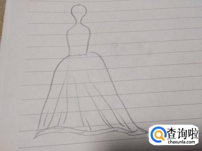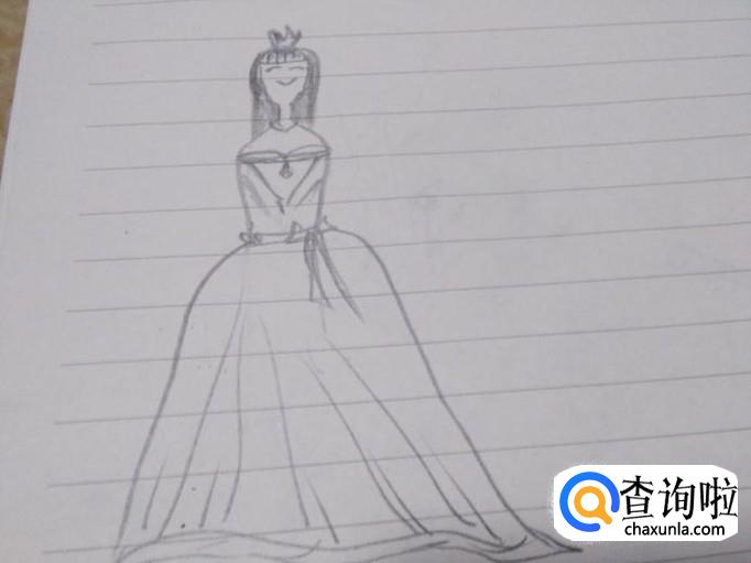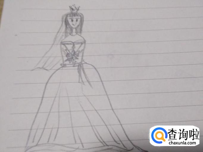 下半身直接用婚纱的裙摆补充上,裙摆画的蓬松一些,添加一些线段作为裙褶,看起来更像公主。