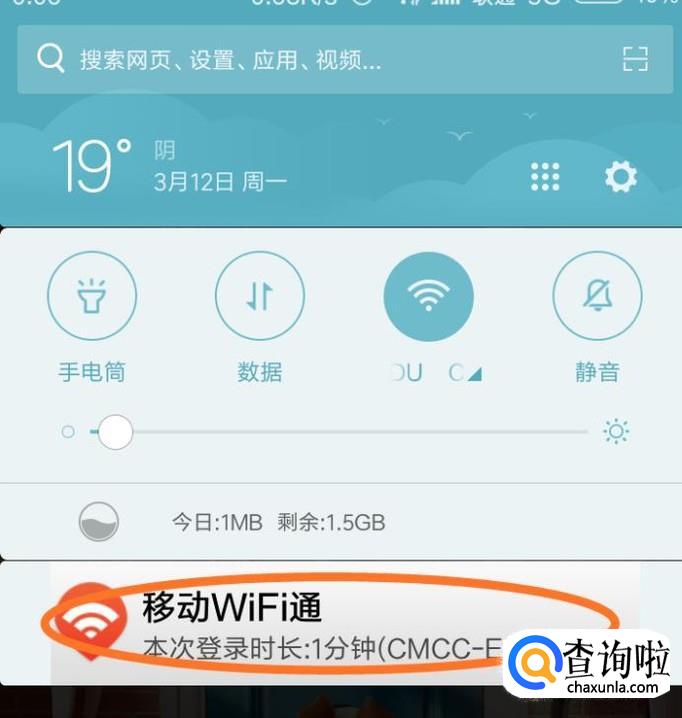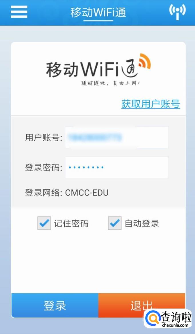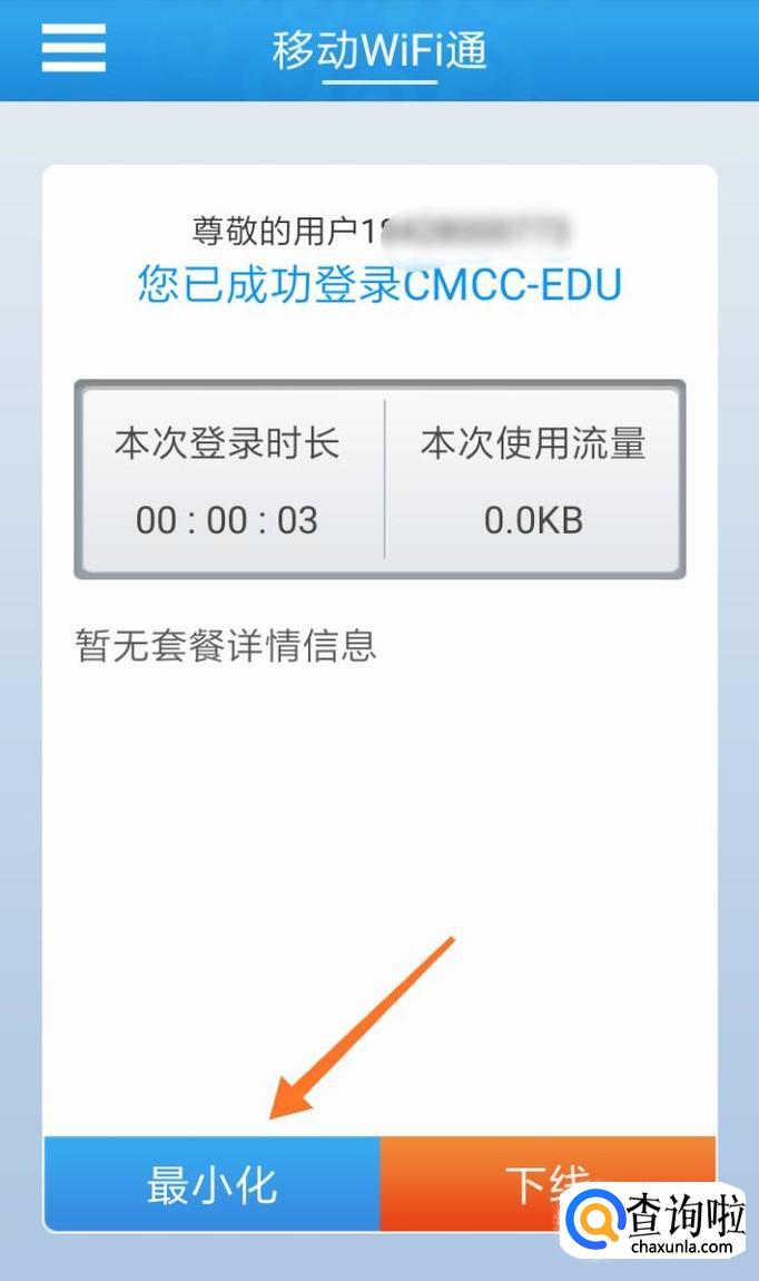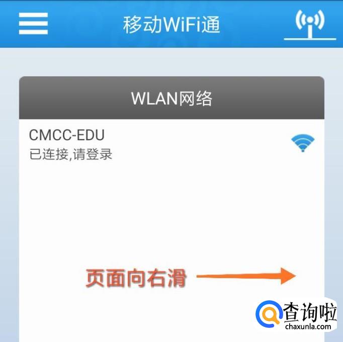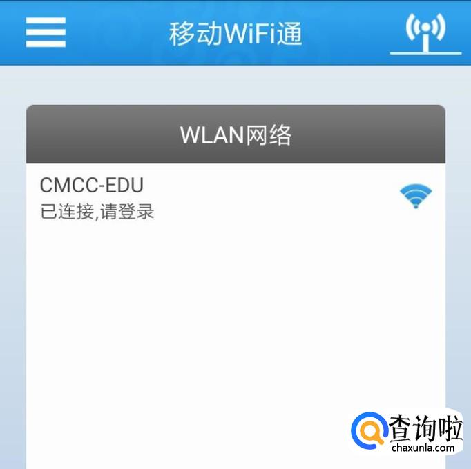 打开WiFi之后会自动连接上CMCC,不行的话自己调一下也是可以的。然后打开移动WiFi通,会看到下面这个界面,就自动连上CMCC,但是现在需要登录才能上网。
