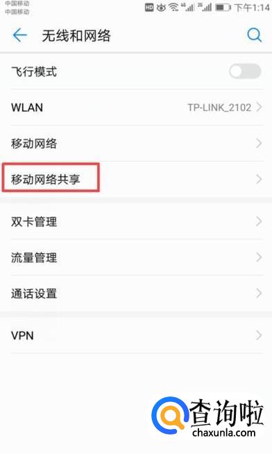 然后我们点击移动网络共享;