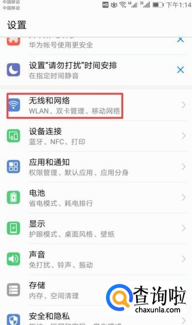 进入设置后,我们点击无线和网络;