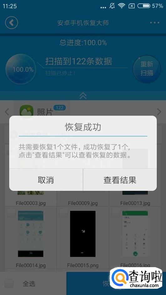 扫描完毕,预览照片,能正常预览的照片就可以可以恢复,勾选自己要的照片,点击恢复,即可把照片直接恢复到手机上。