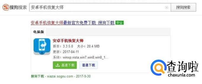 在电脑上搜索“安卓手机恢复大师”,找到软件下载安装到电脑上。