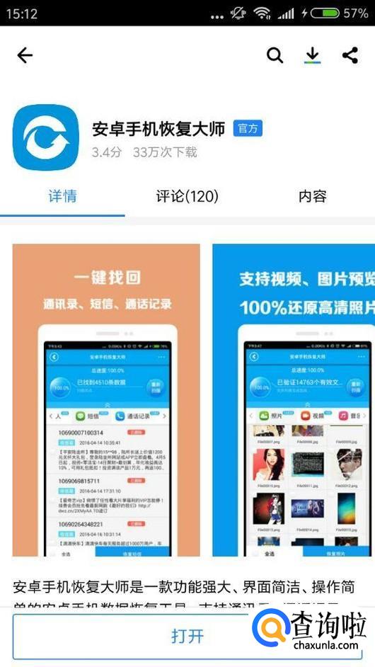在手机的应用宝上搜索“安卓手机恢复大师”,下载到手机上。